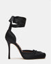 Elevate your style with the LARINA pump heel. featuring a sophisticated square-toe and a sleek lace-up design. Crafted to combine elegance with modern edge. this shoe offers a refined silhouette perfect for both formal occasions and chic everyday wear. The satin finish adds a luxurious touch. while the lace-up detail ensures a secure. customized fit. Ideal for those seeking a statement piece that balances fashion-forward design with expert craftsmanship.